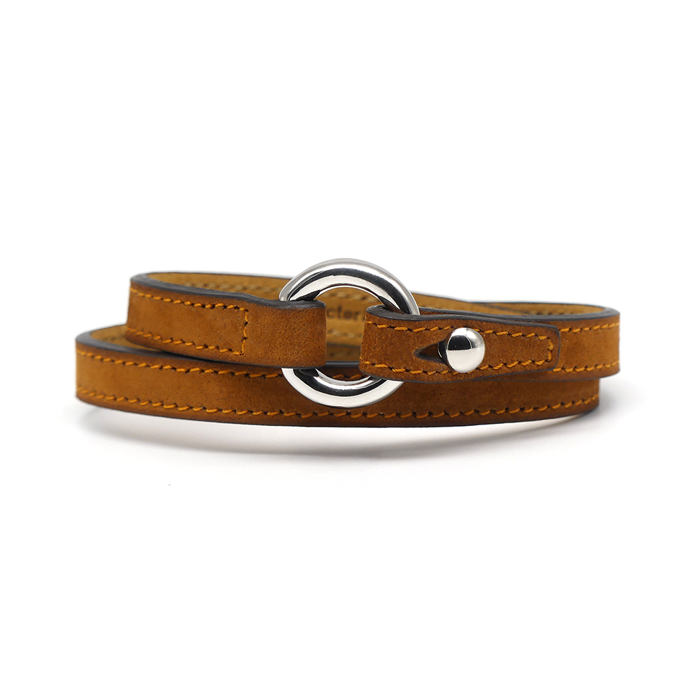 Pour réaliser le bracelet Casoar, nous superposons 3 bandes de cuir pleine fleur. Le dessus est un cuir de taurillon ou d’agneau plongé, selon les coloris. La doublure ainsi que la partie intermédiaire, la triplure sont en cuir de chèvre.